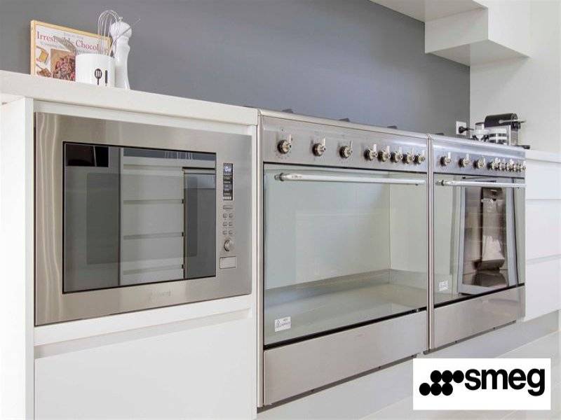 SMEG 90cm freestanding electric fan forced oven + 5 burner gas cooktop
