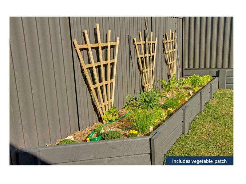 In your backyard, there is an eco-friendly vegetable garden, with corn, herbs and more, and marigolds to chase away the bugs!