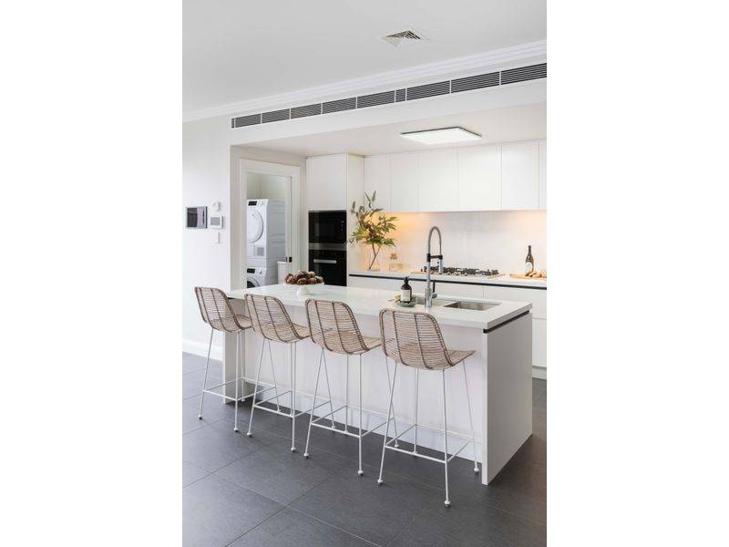Stunning Kitchens fitted with Miele appliances, 40mm edge benchtops, beautiful custom-made soft close cabinetry, ambient under-cupboard accent lighting and fully fitted walk-in-pantry with adjustable shelving.