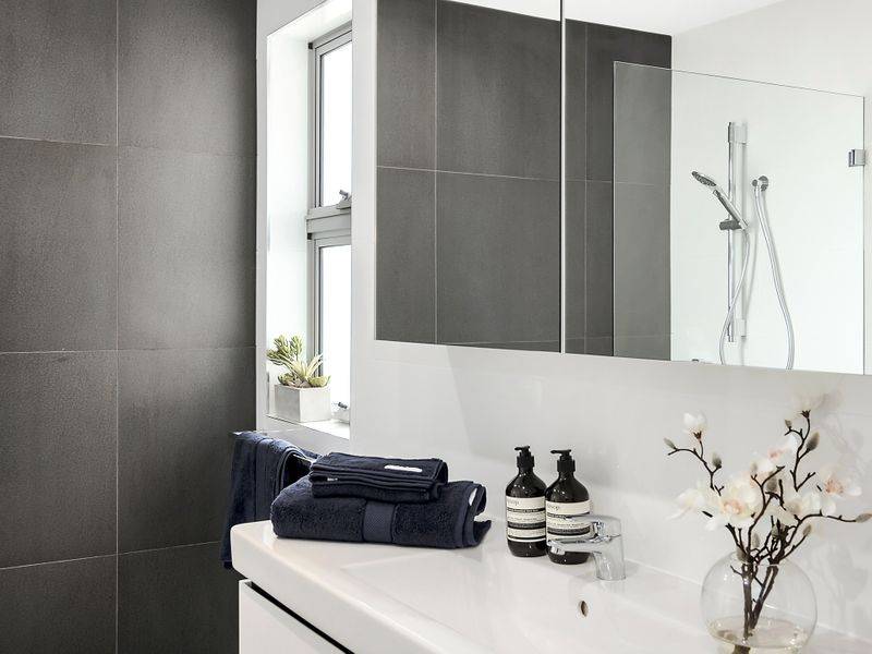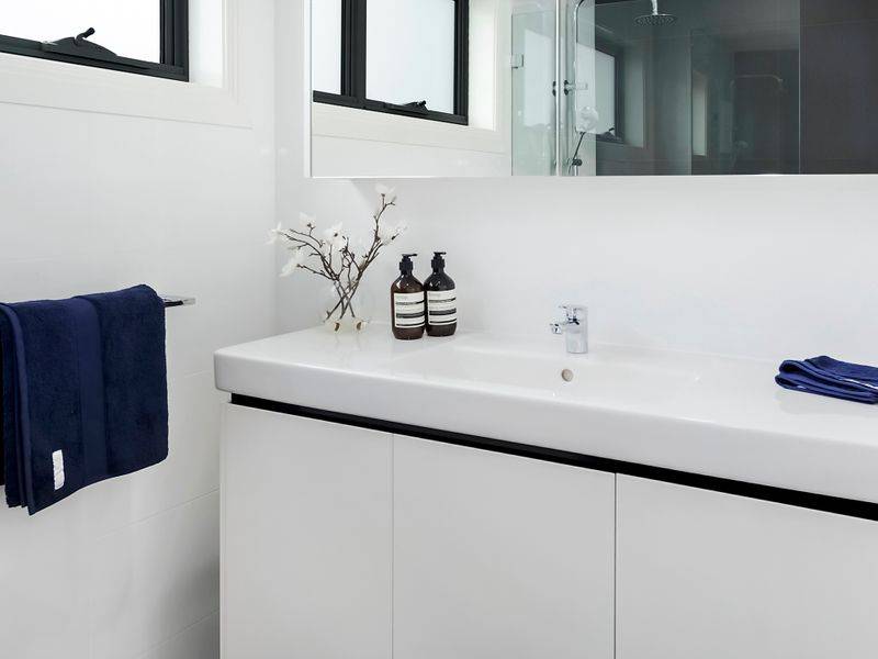Elegantly Sophisticated Villeroy & Boch Bathrooms, featuring free standing baths, custom-built vanities, premium shower systems and tapware, complemented by generous shaving cabinets with abundant storage.