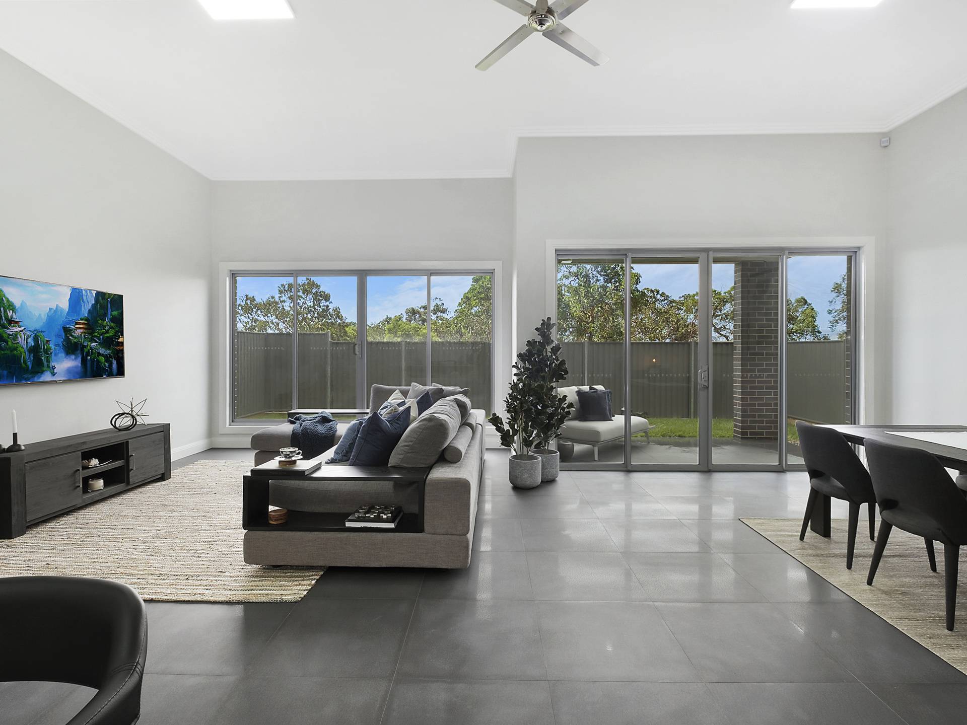Stylish interiors with sleek designer finishes flow through the open plan main living space into a low maintenance sized yard. With sliding doors and oversized picture windows, the back yard becomes another room. Perfect for play, green space and vegetable gardens but without sacrificing weekends on maintenance.